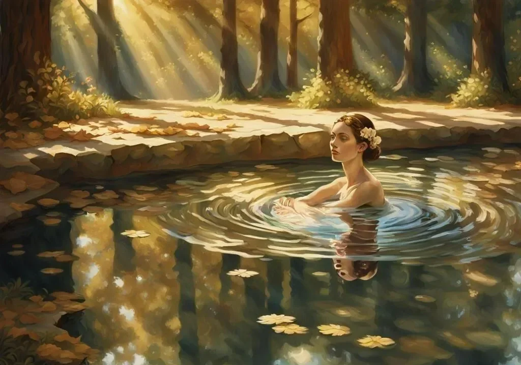 In Greek history and mythology, the idea of an “infinite bath” is less about taking a literal bath and more about rituals involving water. In ancient Greece, washing oneself held symbolic importance and often took place at specific moments, such as after returning home from war, or at sacred locations like the springs of Epidaurus, where washing was part of rituals of healing and renewal.