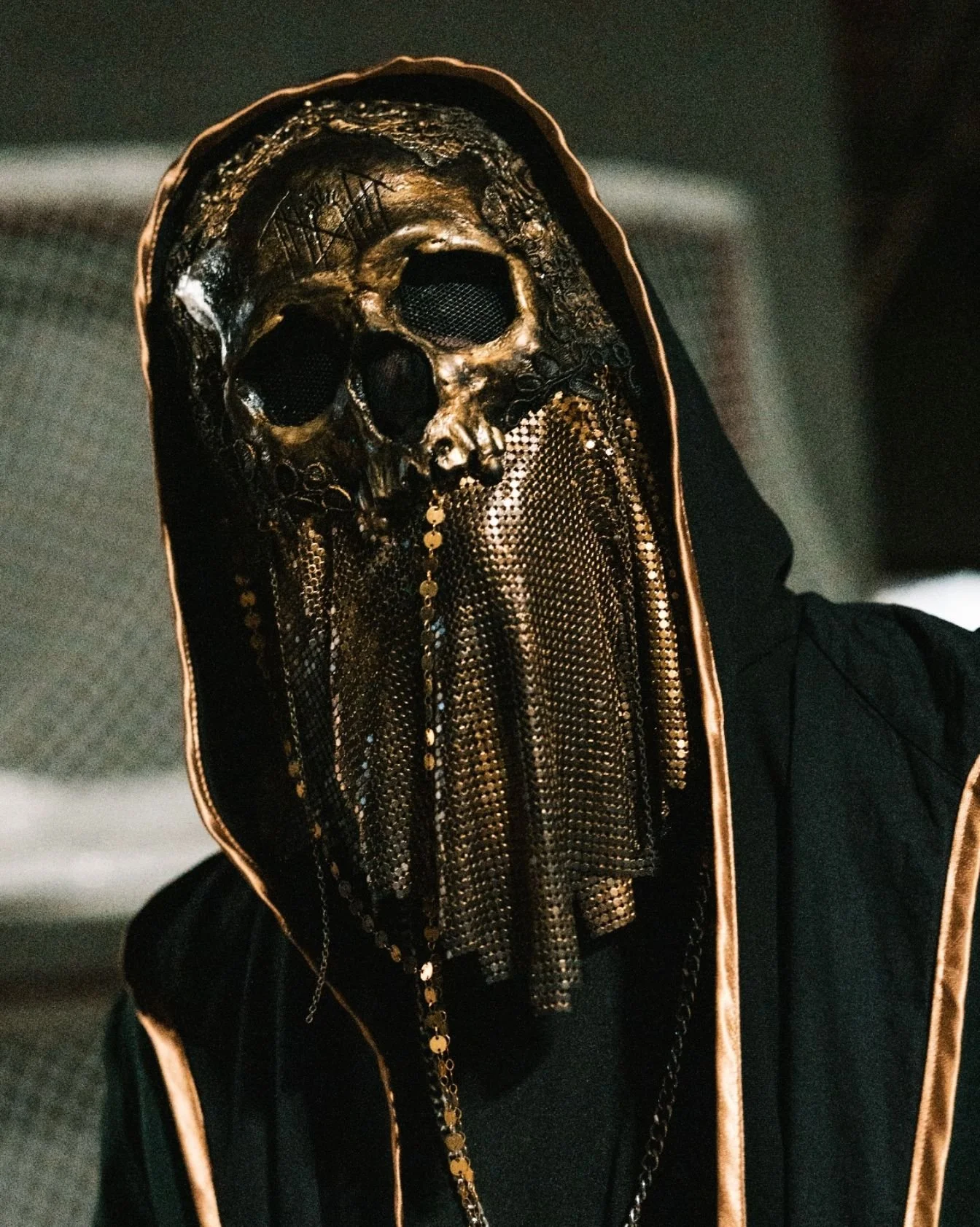 Et in Arcadia Ego first appears in Renaissance paintings in 1618 in a painting by Guercino, depicting two young shepherds looking at a skull (a symbol of memento mori) placed on a pedestal engraved with the words ‘Et in Aradia ego’. It is believed this is the first time the phrase is used, showing humanity coming face-to-face with the inevitability of death, regardless of your harmonious, idyllic surroundings. Could this skull have inspired the new masks worn by II, III and IV? We believe so, Vessels own memento mori encouraging him to be free of burden, able to live his life to the full.